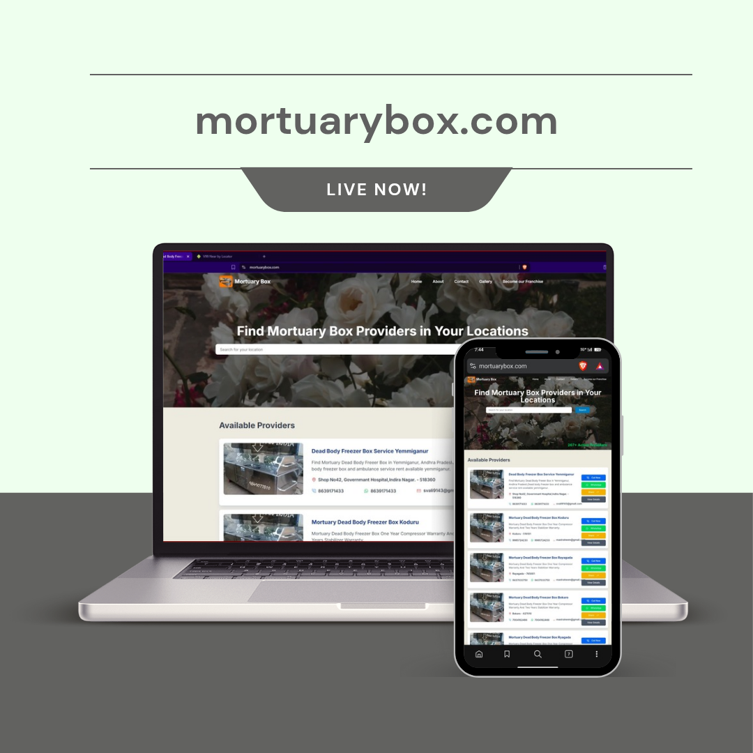 Mortuary Box, a leading supplier of freezer boxes and mortuary equipment, needed a platform to list their products and service locations. PrimeInTech developed a customized listing-based website along with SEO support to improve their market presence.